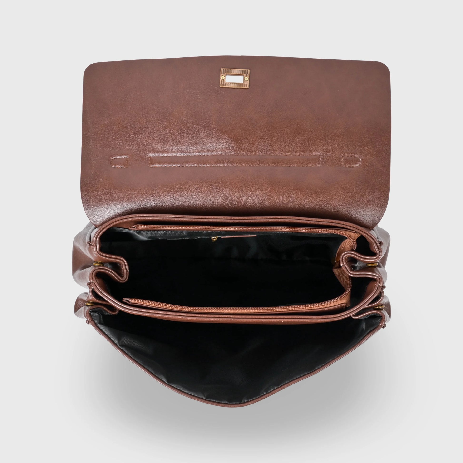 Crafted from high-quality vegan leather, this bag delivers a polished vintage look while remaining lightweight and practical. The structured body helps the bag hold its shape, while the secure lock closure keeps your essentials protected throughout the day.