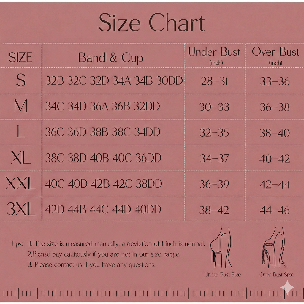 Use the size guide on the product page and measure your underbust and bust in inches. If you’re between sizes, we recommend choosing the larger size for a more relaxed fit.